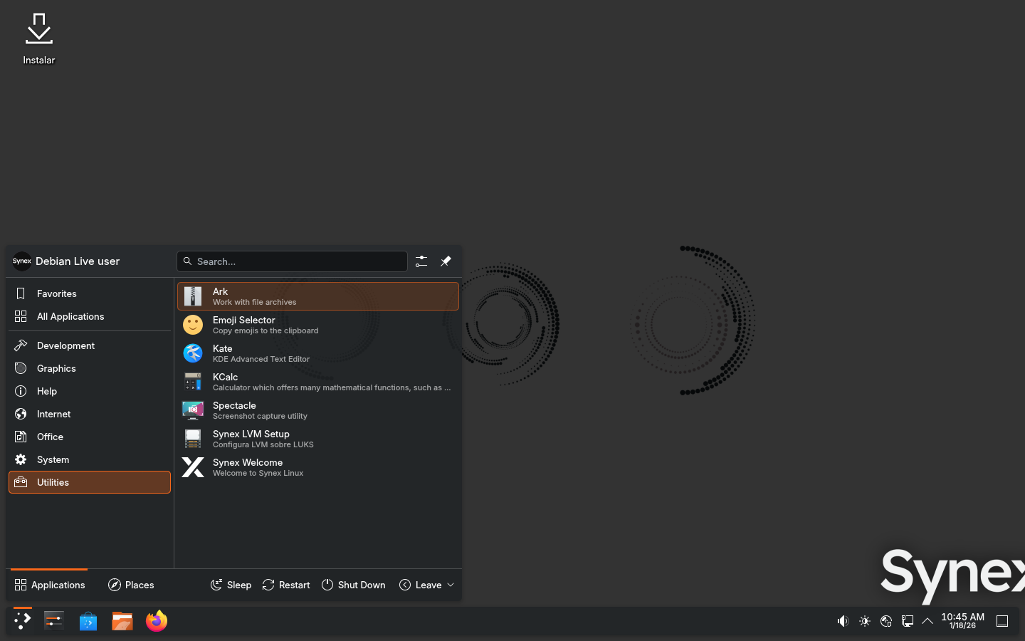 Synex Linux basiert auf Debian und kommt aus Argentinien. Die Desktop Variante kann mit verschiedenen Desktops herunter geladen werden. Zdem gibt es eine Server Variante. Das Grundsystem ist recht schmal und kann während der Installation um weitere Anwendungen erweitert werden. Dazu ist allerdings eine Internetverbindung erforderlich.