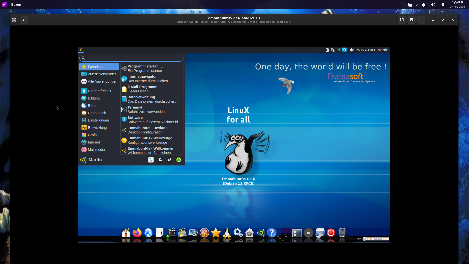 Emmabuntüs ist eine Distro, welche auf Debian aufbaut und mit zwei verschiedenen Desktop Varianten installierbar ist. Die Software kommt aus Frankreich und die Macher wollen erreichen, dass die Lebensdauer von Hardware durch die Verwendung von Linux verlängert wird. Zudem werden Projekte in Togo unterstützt. Die Distro bringt eine Menge Anwendungen mit auf den Rechner.