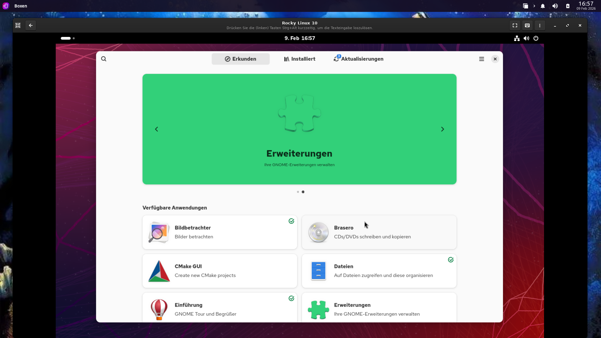 Rocky Linux kommt aus den USA und basiert auf Red Hat Linux. Eigentlich eher etwas für Unternehmen kann die Desktop Version durchaus auch für privat interessant sein. Allerdings ist die Disto mit 8,6 GB nicht gerade klein und das, obwohl praktisch keine Anwendungen mitkommen, welche der Produktivität im Büro, oder der Arbeit daheim dienen.Gnome dient als Desktop Umgebung.