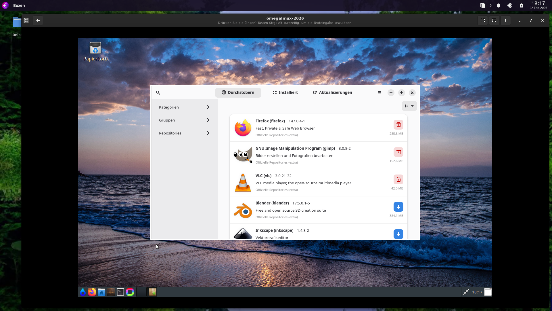 Omega Linux kommt aus Chile und basiert seit der neusten Version nicht mehr auf Ubuntu, sondern auf Arch. Die Distro ist sehr klein und läuft auch auf sehr alten Rechnern. Die Installation mittels Calamares ist auch für Anfänger möglich. Allerdings werden Apps über die Konsole installiert, was für Anfänger dann doch eher schwierig wird, zumal in der vorhandenen Anleitung ein Fehler enthalten ist.