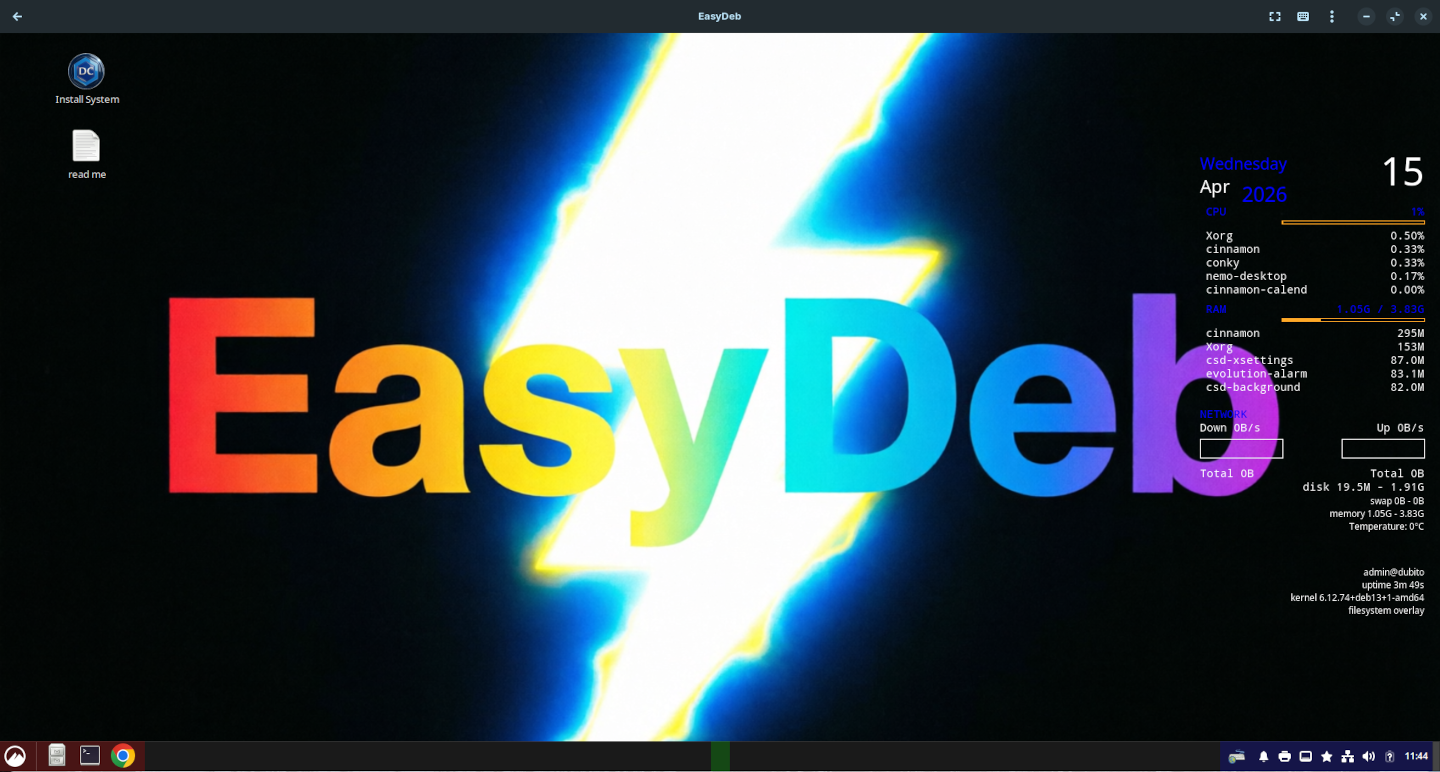 Easydeb basiert, wie der Name vermuten lässt, auf Debian und kommt aus Italien. Als Desktop kann Cinnamon mit X11, oder Wayland verwendet werden. Die ISO hat eine Größe von 2,9 GB.